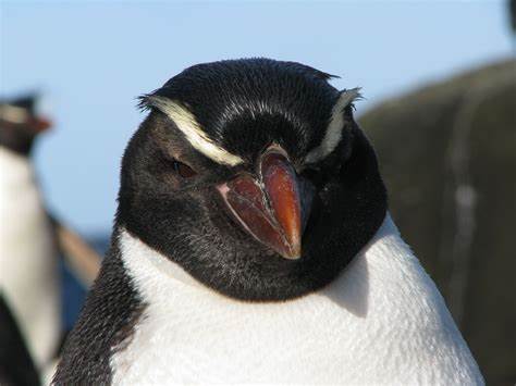 - Uiterlijk: De Snareskuifpinguïn heeft een zwarte rug en een witte buik, zoals veel pinguïns. Wat hem onderscheidt, zijn de opvallende gele kuifveren die van zijn voorhoofd naar achteren wijzen, en zijn roodbruine ogen.
