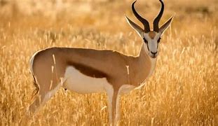 - Dieet: De springbok is een herbivoor die gras, bladeren en scheuten eet. Hij heeft een gemengd dieet en kan zowel grazen als bladeren eten, afhankelijk van de beschikbaarheid.
