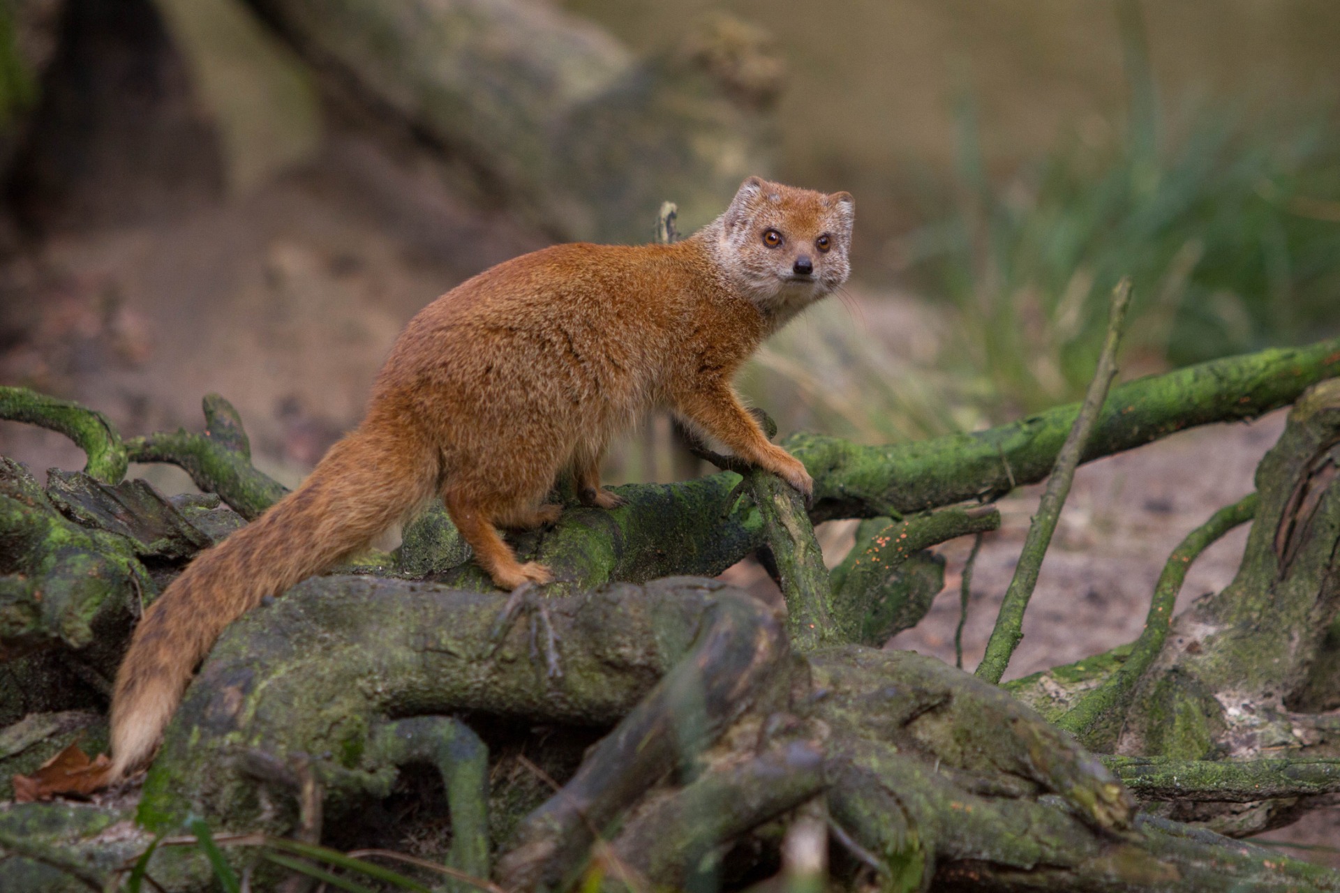 De vosmangoest heeft een lang, slank lichaam, korte poten en een relatief lange staart die vaak donkerder is aan het uiteinde.