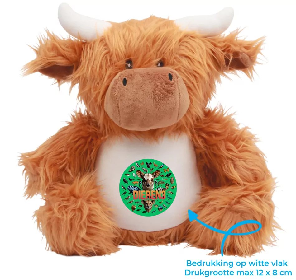 Ben je op zoek naar een originele knuffel die je helemaal eigen kunt maken? Ontdek de MM565 Knuffel Koe – een superzachte Highland Cow die niet alleen onweerstaanbaar knuffelbaar is, maar ook speciaal ontworpen is om te personaliseren. Dankzij de handige rits aan de onderkant haal je de vulling eenvoudig uit de buik, zodat er direct bedrukt kan worden. Zo maak je er in een handomdraai een uniek en persoonlijk cadeau van.